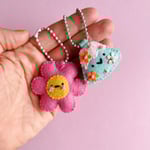Each bag charm is hand sewn / embroidered & made with 100% wool felt.
